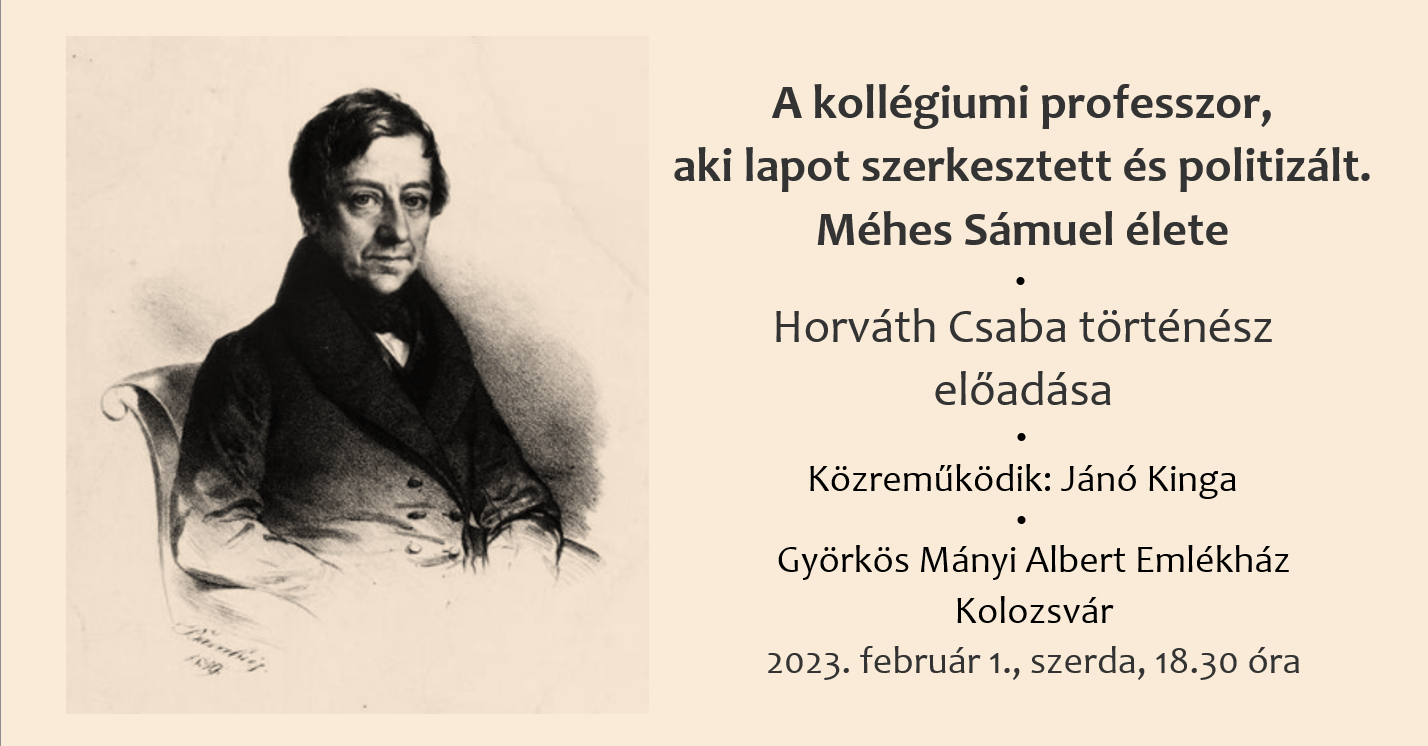 2023. február 1-én, szerdán, 18.30 órától Horváth Csaba történész tart előadást A kollégiumi professzor, aki lapot szerkesztett és politizált. Méhes Sámuel élete címmel a Györkös Mányi Albert Emlékházban (Kolozsvár, Republicii / Majális u. 5.).