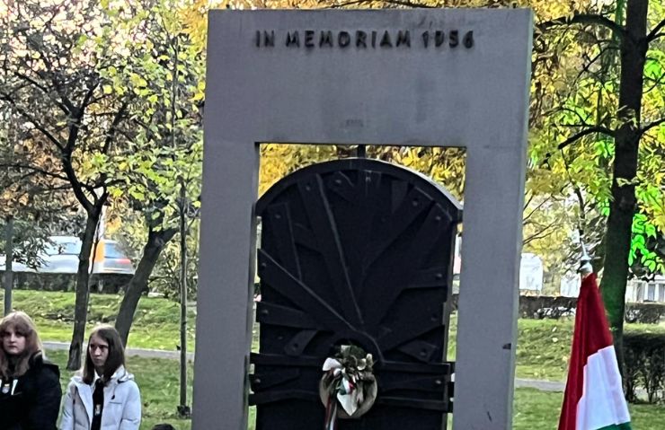 Az Erdélyi Magyar Közművelődési Egyesület az 1956-os forradalom és szabadságharc 68. évfordulóján a Kolozsvár sétatéri ’56-os emlékművénél koszorúzott.