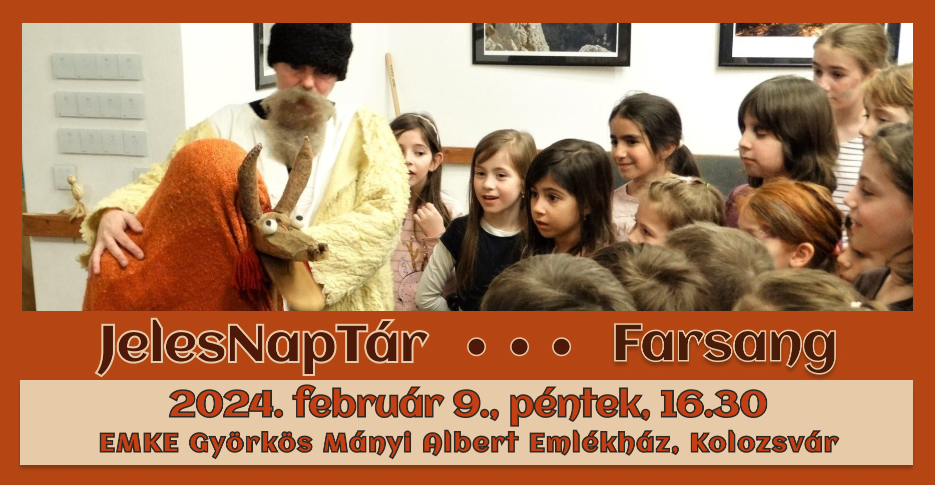 A JelesNapTár hagyományőrző gyermekprogramunk 2024. február 9-én, pénteken, 16.30 órától jelentkezik újra a Györkös Mányi Albert Emlékházban (Kolozsvár, Republicii/Majális u. 5.).